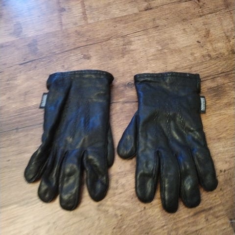 Hyvässä kunnossa olevat talvi nahka hanskat joissa lampaan villa sisä vuori muistaakseni.
