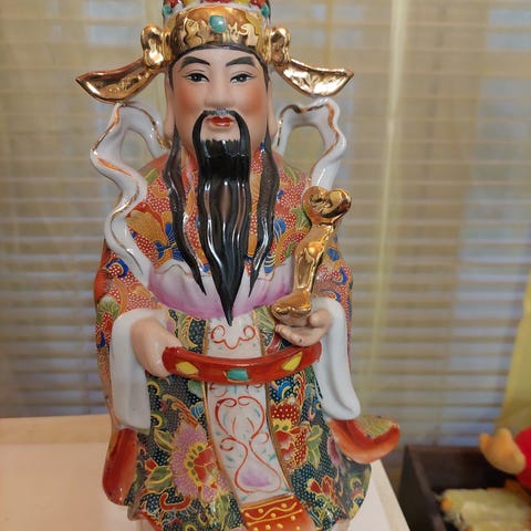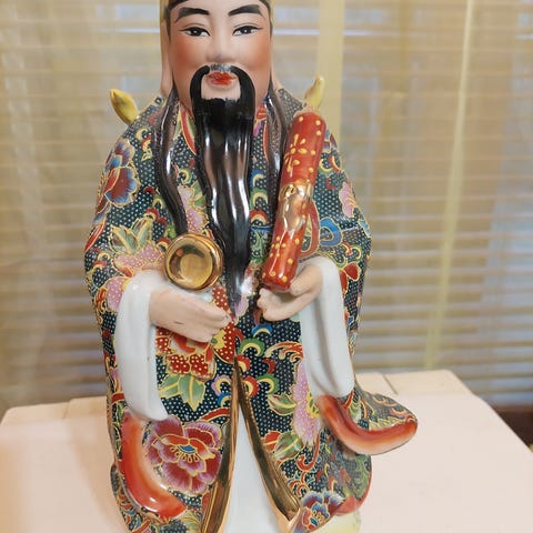 Ostettu Bangkokista kahden muun posliinipatsaan kanssa. Tämän takaa(katso kuva jossa sormi) puuttuu pieni pala reilu sentin jonka puuttumista ei välttämättä huomaa. Ei toridiiliä Kiitos. Postit 8euroa lisää hintaan kun pitää pakata väljästi.
