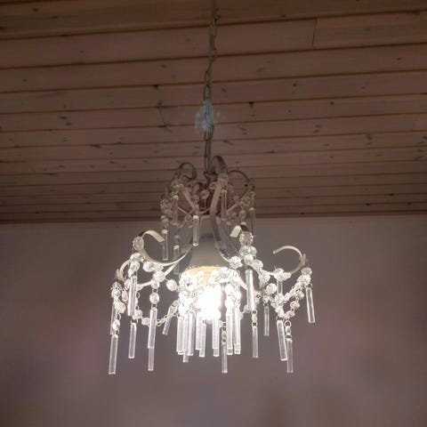 5 lamppuinen valaisin. Lamput toimivat ainakin viimeksi - ollut varastossa. Ripustuskoukku puuttuu; johtoon kiedottu lenkki. Vain nouto, en voi lähettää.