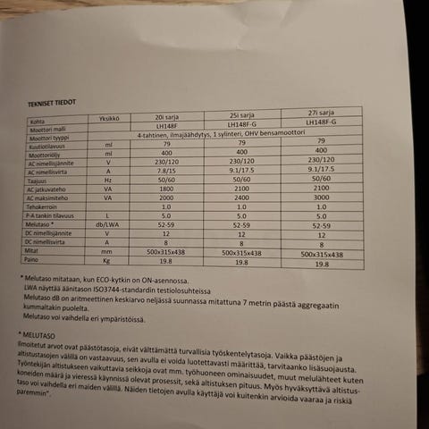 Älykäs kaasutusjärjestelmä tunnistaa automaattisesti kuormituksen ja säätää moottorin nopeuden vastaamaan sitä. Tämä säästää polttoainetta ja vähentää melua. *¼ nimelliskuormasta 7 metrin etäisyydeltä.