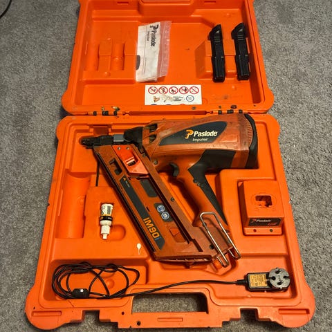 Hyvässä kunnossa oleva Pasloden Pfs160 paineilmakäyttöinen naulain myynnissä, kun töissä ei näin järeällä pyssyllä enää mitään tee ja pölyyntyy vaan kaapissa tämäkin tällä hetkellä. Testattu ja putsattu. Linkistä lisätietoja https://www.itwconstruction.fi/fi/Puukiinnitys,-paineilma/Runko--ja-rullanaulaus/PFS160_pFI_178980sharp0.htm