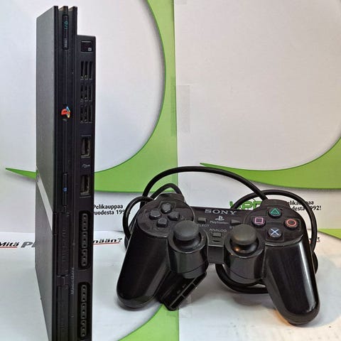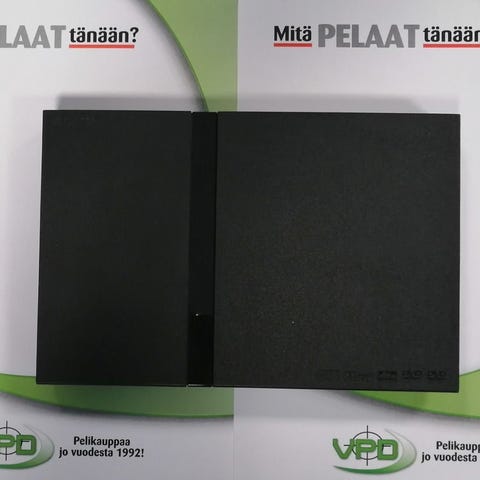 PS2 Pelikone Slim (SCPH-77004) Uusi ja parannettu "Slim" malli joka on entistä näppärämpi käyttää. PlayStation 2 - tekniset tiedotPlayStation 2:n tyylikkään, hopeisen ulkokuoren alla piilee sähköinen tehopakkaus. PlayStation 2 on yksi tehokkaimmista koskaan kehitetyistä pelikoneista ja sen solakka runko kätkee sisälleen uskomattoman määrän raakaa laskentatehoa. Tämä varmistaa, että jokainen pelaamasi peli, kuuntelemasi CD ja katsomasi DVD on aina huippuelämys.Jos olet kiinnostunut PlayStation 2:n teknisestä puolesta, lue alla odottava tietopaketti. PERUSTIEDOTTuotteen nimi PlayStation®2 "Silver" (hopea)Yhteensopivat formaatit PlayStation®-CD-ROMPlayStation®2-CD-ROMPlayStation®2-DVD-ROMCD-äänilevyDVD-Video*DVD-RW (VR-tila)* Termillä DVD-Video viitataan DVD-R-, DVD-RW (Video-tila)-, DVD+R- jaDVD+RW-levyihin.TEHOTPlayStation 2:n sydän on CPU eli keskusyksikkö, joka komentaa taukoamatta koneen eri osia.Keskusmuistin ja grafiikkasyntetisaattorin tukemana se saa PlayStation 2:n tuottamaantelevisioruudullesi valtavan määrän polygoneja, jotka muodostavat ruudulla näkyvän grafiikan.Keskusyksikkö: 128-bittinen erikoisvalmistettu Emotion Engine -siru multimediakäyttöönJärjestelmän kellotaajuus: 294.912MHZVälimuisti: Käskyt 16 kt, data 8 kt + 16 kt (ScrP)Keskusmuisti: 32 MtMuistiväylän kaistanleveys: 128-bittinen DMAOheissuoritin: 2 rinnakkaista vektorikäyttöyksikköäLiukuluvun laskentateho: 6.2 GFLOPS3D CG geometrinen muunnos: 66 miljoonaa monikulmiota sekunnissaPakattujen kuvien purkaja: MPEG2GRAFIIKKASe, joka sanoi pelien viehätyksen perustuvan grafiikkaan, päätyi tähän lopputulokseen nähtyään PlayStation 2:n visuaalisen voiman. PS2:n grafiikkasyntetisaattorin ansiosta ruudulla vipeltävät polygonit eivät kuluta keskusyksikön arvokasta aikaa Laran kehonkielen tuottamiseen. GrafiikkasyntetisaattoriJärjestelmän kellotaajuus: 147MHzPiirin muisti: 4MB DRAMKehyspuskurin kaistanleveys: 38.4Gtavua sekunnissaPikseleiden kirjoitusnopeus: 2.4Gpikseliä sekunnissal / 0PlayStation 2:n I/O (eli input/output) -järjestelmät pitävät huolen siitä, että tieto liikkuu konsolin eri osie välillä sutjakkaasti. Valitse mieluisesi vertaus: ne ovat kuin teitä vailla liikenneruuhkia tai letkuja, jotka eivät koskaan mene tukkoon. Katsoipa asiaa mistä vinkkelistä tahansa, PlayStation 2:n I/O-järjestelmäthoitavat homman kotiin. Keskusyksikön ydin: Ehostettu PlayStation-keskusyksikköKellotaajuus: 37.5MHzIOP-muisti: 2 MtAlaväylä: 32-bittinenÄäniMitä olisi upea grafiikka ilman hienoja ääniä? Riemastuta naapurisi ja uppoudu pelin tunnelmaan mahtavan 48-kanavaisen äänen myötä.Äänien lukumäärä: 48-kanavainen, 3D surround-äänelläÄänimuisti: 2 MtUlostulon taajuus: Vaihtelee 48 KHz:iin saakka (DAT-laatu)DVDKun et kerta kaikkiaan jaksa enää asettaa sormiasi DUALSHOCK-ohjaimelle, ota hyvä asento, rentoudu ja anna PlayStation 2:n viihdyttää sinua DVD-elokuvin.Maksimikoko: kaksikerros 9GBLaitteen nopeus: DVD-ROM: n. 4-kertainen nopeus. CD-ROM: n. 24-kertainennopeusLIITÄNNÄTHaluatko laajentaa PlayStation 2 -kokemustasi? Se onnistuu erilaisten liitäntöjen avulla. PlayStation 2 tukee monenlaisia laaje