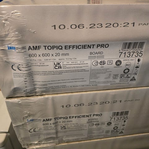 Ecophon Master A akustiikkalevy, mitat 1200x600x40 mm. Levyt on valmistettu akustisesta materiaalista, joka soveltuu tilojen äänieristykseen ja äänen vaimentamiseen. Tuote on suunniteltu parantamaan tilan akustiikkaa ja soveltuu esimerkiksi toimistoihin, kouluihin ja muihin julkisiin tiloihin.