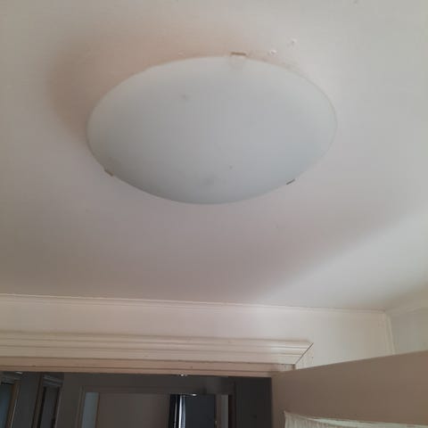 Kaksi lamppua palanut ja muutama lasikupu särkynyt, kts. kuva. Lamput halogenejä, ovat vaihdettavissa. Rikkonaiset lamput voi asetella keskelle piiloon.