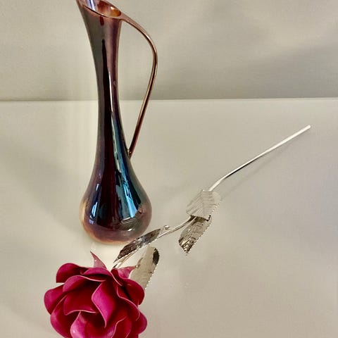 Myydään ruusu ja pieni maljakko, kokonaiskorkeus 33 cm