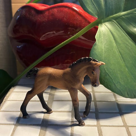 Schleich hevonen figuriini, vaaleanharmaa väriltään. Materiaali muovia. Pieni koko, sopii keräilyyn tai leikkeihin.