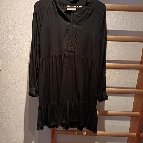 Kuvanmukaiset. Musta menee koolle M, L. Joustaa. 7€. Sovitettu. Kuviollinen Kainalo-Kainalo 57cm. Olkapää-helma 90cm. Röyhelöä helmassa. = 9€. Sovitettu.