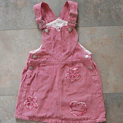 Vakosametti, lappuhame, lappumekko. Lindex merkkinen, koko 92, väri vaalean punainen, hieman murrettu. Ehjä, siisti, hyvä kuntoinen