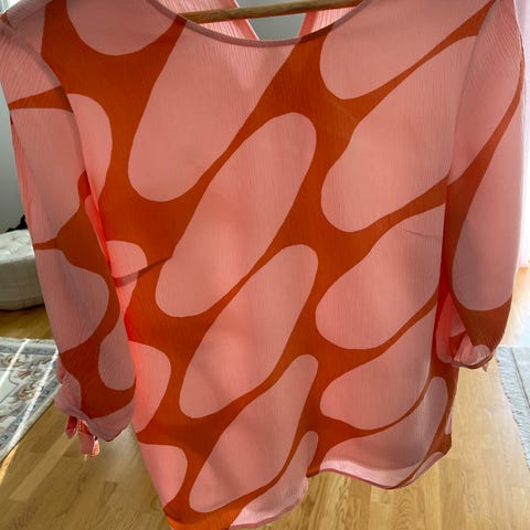 Vähän käytetty marimekon L koon naisten pusero. Värit kirkkaat ei näppyjä. Tästä kaunis retro henkinen vaate, itselle jäänyt liian isoksi