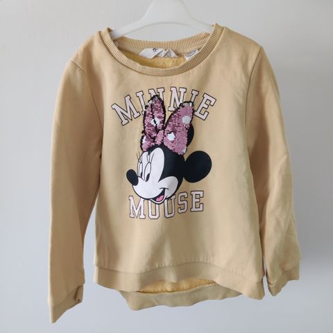 Lasten asusetti: legginssit ja lämmin pidennetty collegepaita (sisäpuolella nukka), Minni Hiiri -kuosilla. Kunto erittäin hyvä, kuvio on tehty kuluneen näköiseksi. Hupussa on Minni Hiiren korvat ja rusetit. Todella kaunis printti – ostimme samanlaisen isommassa koossa