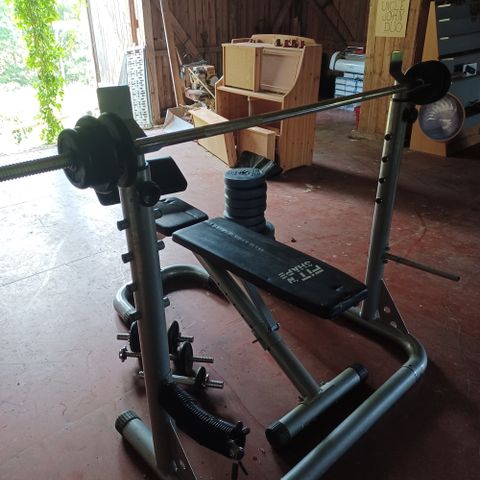 Kuvan mukainen painonnosto setti tango 55kg+tanko ja käsipainot 26kg+ tangot.