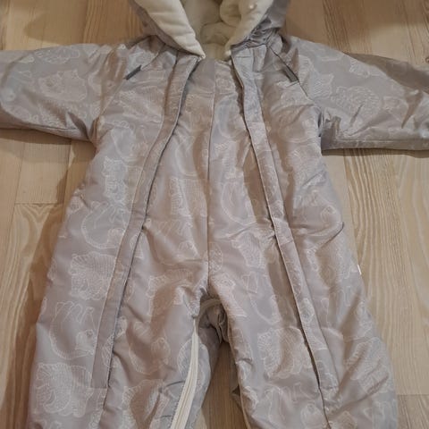 Talvihaalari, jonka saa myös makuupussiksi. Sopii pienemmillekin vauvoille. Koko 68/74. Kunto erinomainen ja pesty hajusteettomasti. Eläimetön talous.