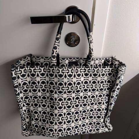 Kaunis, vetoketjulla suljettava laukku, jossa tilava sivutasku sekä reilu sisätasku. Koko 35x40 ja syvyys pohjassa 14 cm.