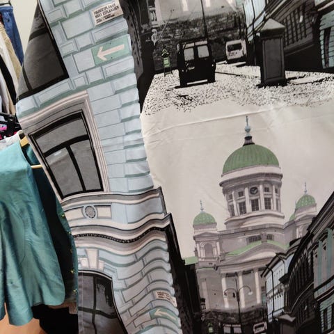 Myydään uusi kuvien mukainen Vallilan vanha Turku sivuverho, 1kpl, koko 140cm x 250cm.