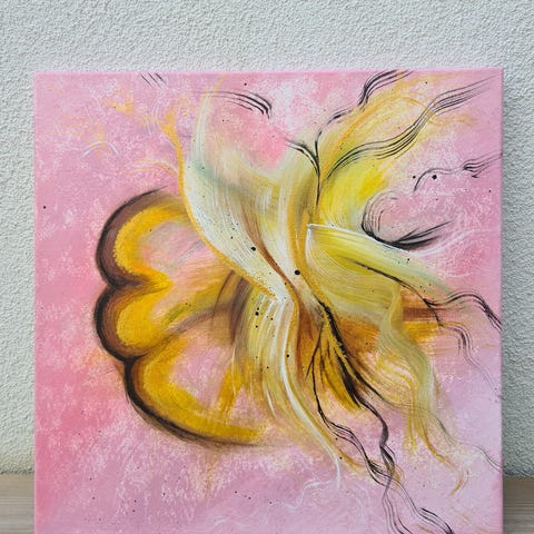 Abstrakti akryylimaalaus. Koko 33 x 42 cm. Ripustusvalmis taulu.