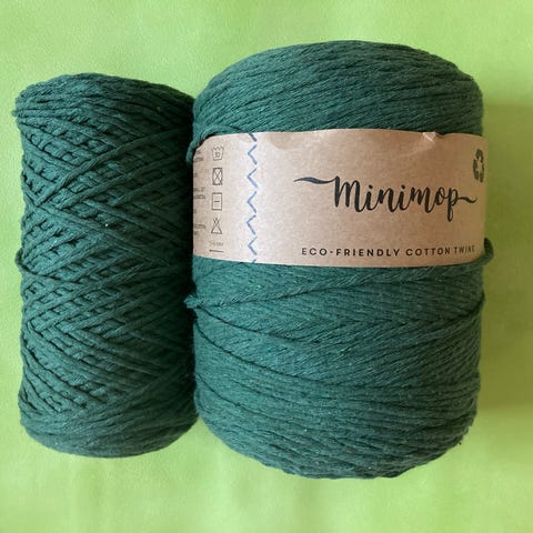 Minimop makrameelankoja, 1 täysi kerä ja 2 vajaata kerää. Sävy Leijonankeltainen.