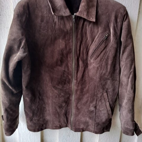 Ruskea mokkanahkatakki, tekokarvareunus hupussa ja hihoissa. M&s merkkinen. Ei kokomerkintää mutta on kokoa 36/38.