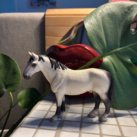 Schleich hevonen figuriini, ruskea väriltään. Pieni koko, valmistettu muovista. Soveltuu keräilyyn tai leikkeihin.
