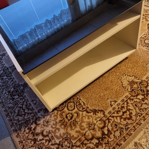 Hyvä lasikantinen sohvapöytä puujaloilla. Vain nouto@
