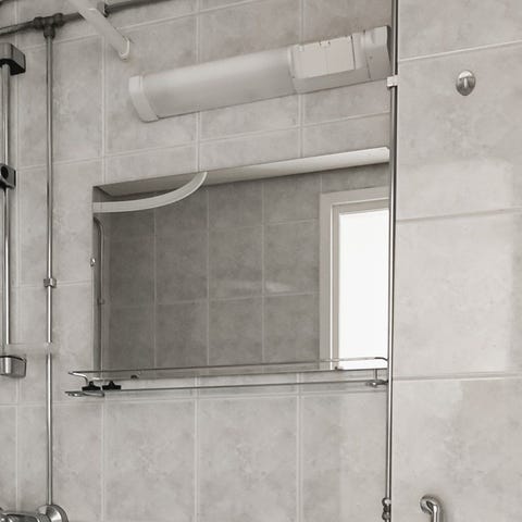 Kaksi valkoista metallista laatikkoa eri kokoisina kylpyhuoneeseen. Laatikot ovat suorakulmaisia ja sisältävät kiinnitysruuveja. Mitat kuvissa näkyvät mittanauhan avulla: pienempi laatikko on 35cm korkea, 20cm leveä ja n13.5cm syvä. Isompi on 40cm korkea, 30cm leveä ja saman n 13.5cm syvä. Soveltuvat säilytykseen tai järjestelyyn kosteissa tiloissa.