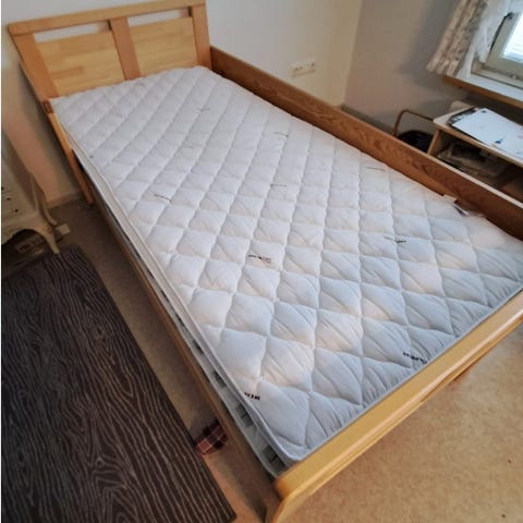 Kiteen huonekalutehtaan säädettävä seniorisänky. Moottoripohja ja nousutuki. Hinta uutena noin 1000 euroa.