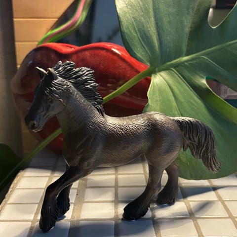 Schleich varsa Pieni Ruskea Muovilelu on pienikokoinen hevosen muovinen lelu, jossa on ruskea väri ja musta harja ja häntä. Leikkiin soveltuva hevosenmuotoinen figuuri, joka on valmistettu kestävästä muovista.