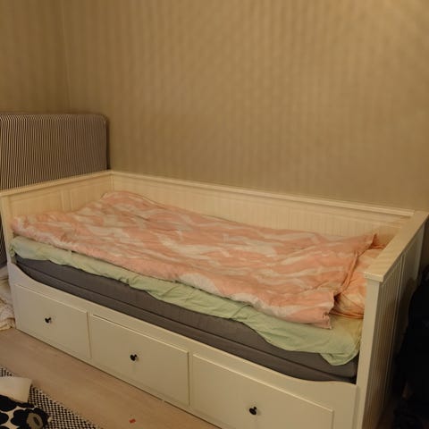 Myydään hyväkuntoinen hästens sänky jossa kaksiosainen yhteen sauman kohdalta ommeltu petauspatja. Sänky koostuu kahdesta 90cm palasta, ei mitään epämääräisiä tahroja ainut käytönjälki on rungon sivussa kankaassa pientä kulumaa kun ennen tätä paikkaa oli seinää vasten.