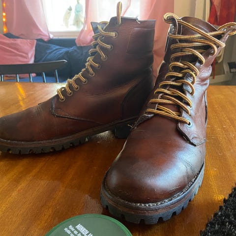 Ok kunnossa olevat varsikengät, retroa 80-lukua. Kokonumerosta en saa selvää, mutta sisämitta on 26cm, kengän korkeus 25cm. Materiaali nahkaa. Voin postittaa tarvittaessa.