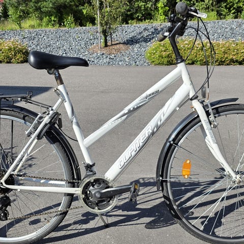 Crescent kaupunkipyörä naisten rungolla. Runkokoko 51 cm ja 28" (700c) kiekot. Väriltään vihreä. Pyörässä on matala runko helpottamaan kyytiin nousua, täyspitkä ketjusuoja, lokasuojat, tavarateline takana sekä etukori. Uusi satula on leveä ja pehmustettu kaupunkiajoon. Soveltuu arkiseen ajoon ja asiointimatkoille kaupunki- ja taajamaympäristössä. 7 vaihdetta, toimivat etu-ja takavalot. Kahdet avaimet. Uudet käsikahvat. Käsi-ja jalkajarrut. Hyväkuntoiset pistosuojatut renkaat. Voin tuoda Lahden lähiympäristöön.