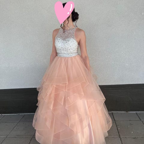 Kerran tanssittu wanhojen mekko, ostettu Ateljè Katariinasta Oulusta. Uuden veroinen. Ei tahroja/käytön jälkiä. Valkoinen yläosa kaunista pitsiä, koristeena helmiä. Alaosa shampanjan sävyistä tylliä. Tyllipäällisen pystyy ompelijalla irroittamaan, jolloin alla shampanjan sävyinen satiinikangas.