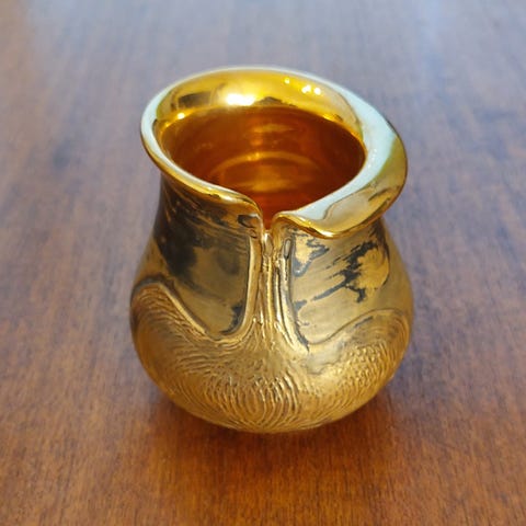 Signeerattu, kullattu, käsin dreijattu.