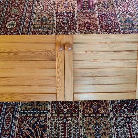 Ovet 2 kpl leveys 49cm korkeus 70cm saranat+kahvat valmiina, oven sisäpuolessa koristelu sisustus kuvio. Melkein uuttavastaava kunto, 2kpl jäljellä 20e/kpl