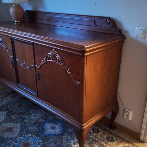 Upeassa kunnossa oleva, näyttävä, kookas täys-tamminen senkki.