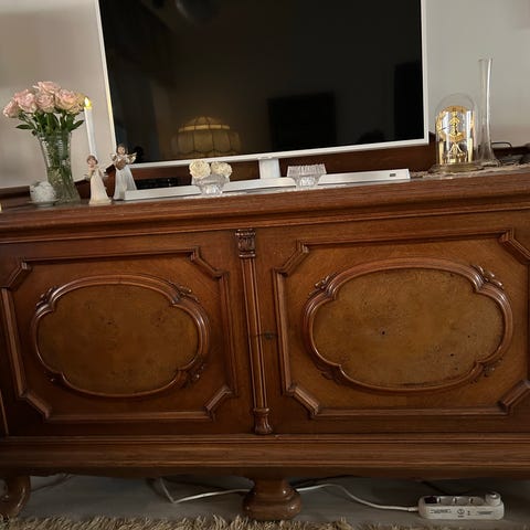 Ovien avaimet puuttuvat, mutta jossain vaihessa on korvattu magneteilla, joten pysyvät hyvin kiinni. Tasossa yksi pyöreä jälki, näkyy kuvassa.