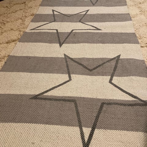 Matto, koko n. 90x60cm. Matto pesun jäljiltä säilytyksessä ollut. Pinnassa hieman nukkaa, jonka saa varmasti poistettua.