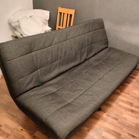 Hyvässä kunnossa siisti vuodesova ja tyynyt. Levitettynä 100cm.