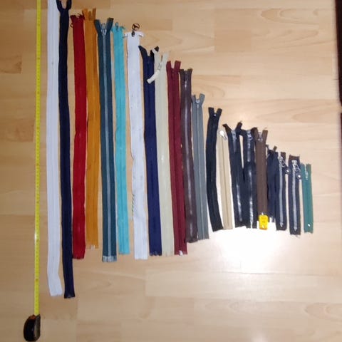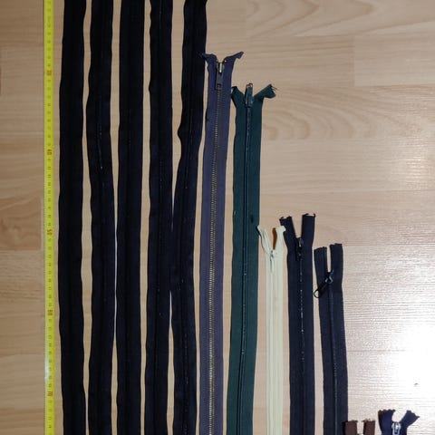 Vetoketjuja joista osa uusia ja osa purettu vaatteista.Isommat ketjut(60-50 cm) 2€/ kpl seuraavat 1€/ kpl.Loput 12 0,50€/ kpl+ lähetys.