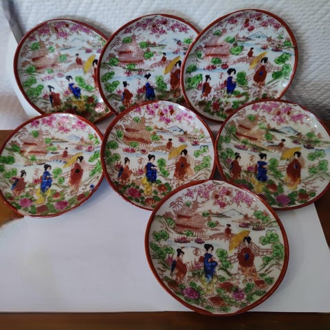 Paljon asetteja ja pikkulautasia.