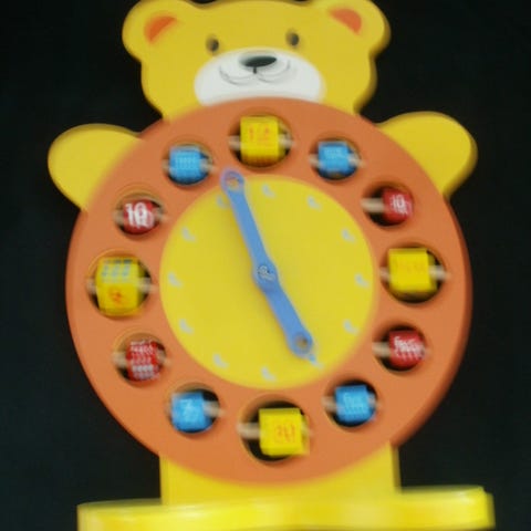 Puinen Hape kellotaulu, jonka numeroiksi voi asetella puupalikoita.