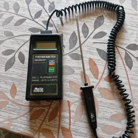 Käyttämätön lämpömittari, joka toimii kahdella AAA-paristolla (eivät ole mukana pakkauksessa). Hyvä suomenkielinen käyttöohje.