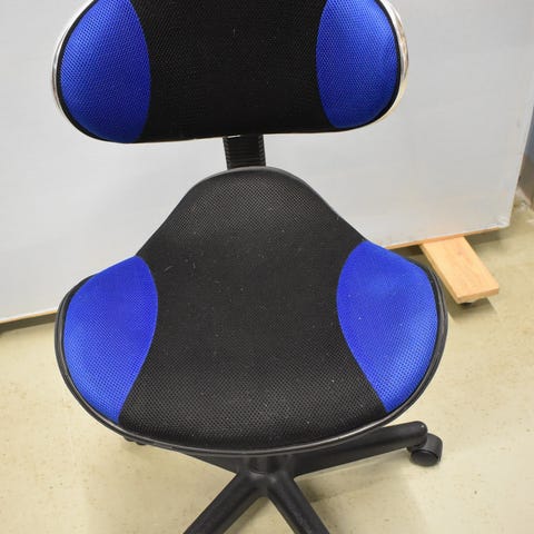 Tässä työtuolissa ei ole pyöriä jaloissa, eli tuoli pysyy paikallaan vaikka istuinosa pyöriikin