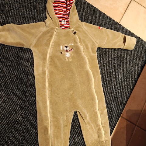 Hyväkuntoinen hupullinen haalari vetoketjukiinnityksellä esim automatkoille ja kauppareissuille. Käännettävät hihan- ja lahkeensuut. Hieman pesunukkaa, mikä huomioitu hinnassa.