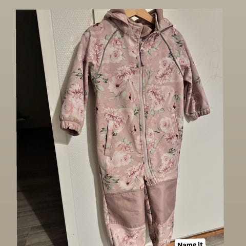 Name it pupukuvioinen vetoketjullinen college pusakka, kokolapussa lukee 86cm, mutta on samankokoinen kuin Disney Bambi-huppari, jossa koko 98cm, eli ehkä 92cm kokoa ovat 😀