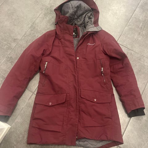 Didriksons merkkinen pitkä lämmin talvitakki, oranssin värinen. Takki on naisten mallia ja kokoa 36. Takissa on vetoketjullinen etuosa, huppu ja käytännölliset taskut. Soveltuu viileisiin sääolosuhteisiin. Kivat heijastinyksityiskohdat. Takissa pientä käytön jälkeä, ja pieni repeämä sisäosassa ks.kuva. Takki pesty.