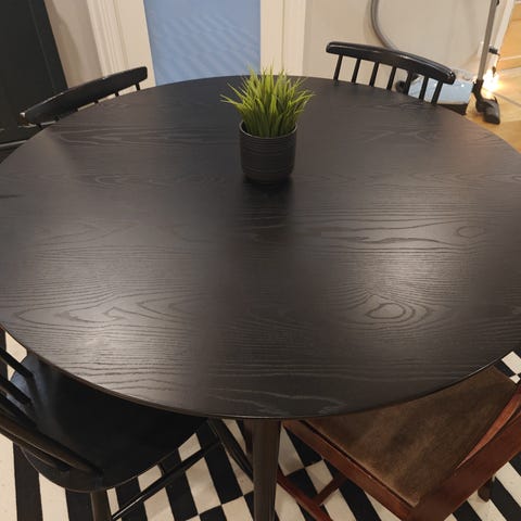Tämä ihastuttava täyspuinen ruokapöytä on kulkenut nyt kolmella sukupolvella. Pieniä kosmeettisia käytönjälkiä on (näkyy kuvissa) mutta koska pöytä on lujaa tekoa, se ei ole meitä haitannut. Myydään koska muutamme pienempään asuntoon. Purettu jo kuljetusta varten kasaan.