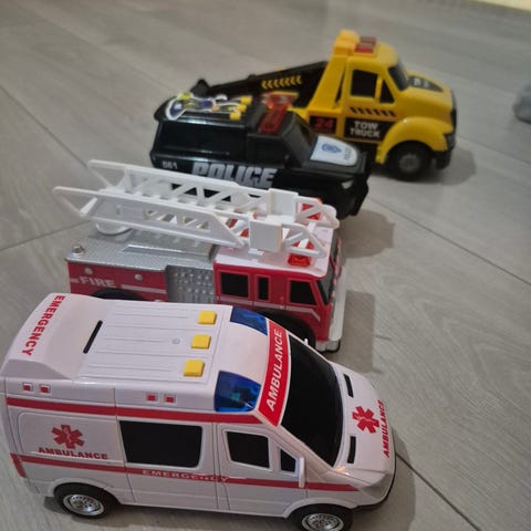 Autoja 26 kpl paloauto esim ensiapu auto äänillä. Ym. Lelut kuvassa,esim. Pöllö valot äänet. Lähes käyttämättömät lelut, mummola käytössä olleet.