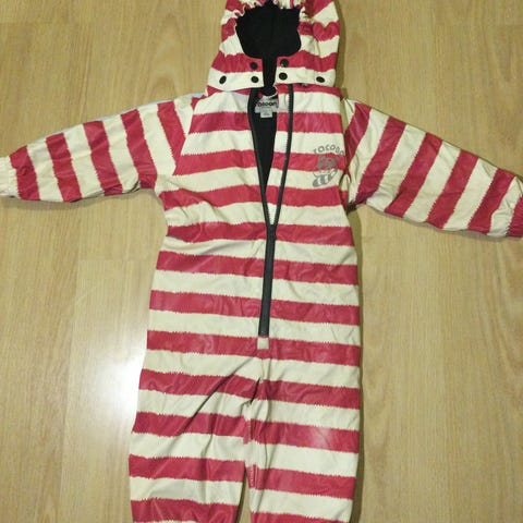 Ihana Petite cherie fleecevuorellinen kurahaalari koko 92. Irroitettava huppu, lämmin fleecevuori, jalkalenksut puuttuu, mutta napit on paikoillaan lenksuja varten. Ehjä ja siisti, polvissa ja pepussa pupun kuvat pikkuisen haalistuneet (ks lisäkuva). Hihojen suut ehjät ja siistit. Savuton koirakoti. Hinta 15e.
