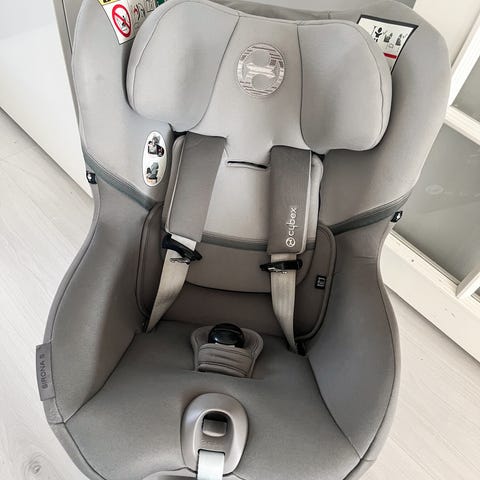 Hyväkuntoinen turvaistuin, istuimen pystyy kääntämään ovelle päin, mikä helpottaa vöiden kiinnittämistä. Selkänojaa voi säätää. Mukana pienen lapsen tuki