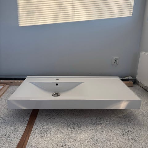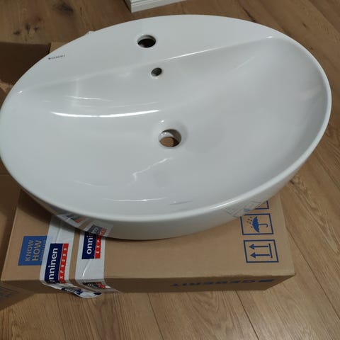Kylpyhuoneen pesuallas, valmistettu valkoisesta keraamisesta materiaalista. Pesuallas on suunniteltu asennettavaksi tasoon. Pesualtaan mitat ovat korkeus: 165 mm, leveys: 615 mm, syvyys: 373 mm, reunan paksuus: 12 mm. Allas on yhä alkuperäispakkauksessa ja täysin käyttämätön. Myymme sen tarpeettomana.