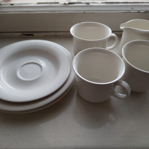 Arabia Arctica Valkoinen Kahvikuppisetti sisältää kuusi valkoista kahvikuppia ja lautasia. Materiaali on posliinia, ja setti soveltuu kahvin tarjoiluun.